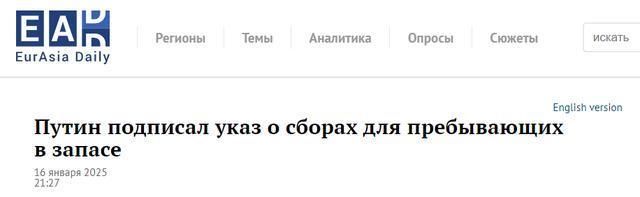 先说这个命令本身。1月16日,普京签署的这份法令要求预备役人员参加军事集训,目的是确保这些"候补军人"保持战斗状态,提高军事技能。表面上看,这是俄罗斯每年都会进行的例行训练,但细究起来,这次的军事集训却处处透着一丝不寻常。